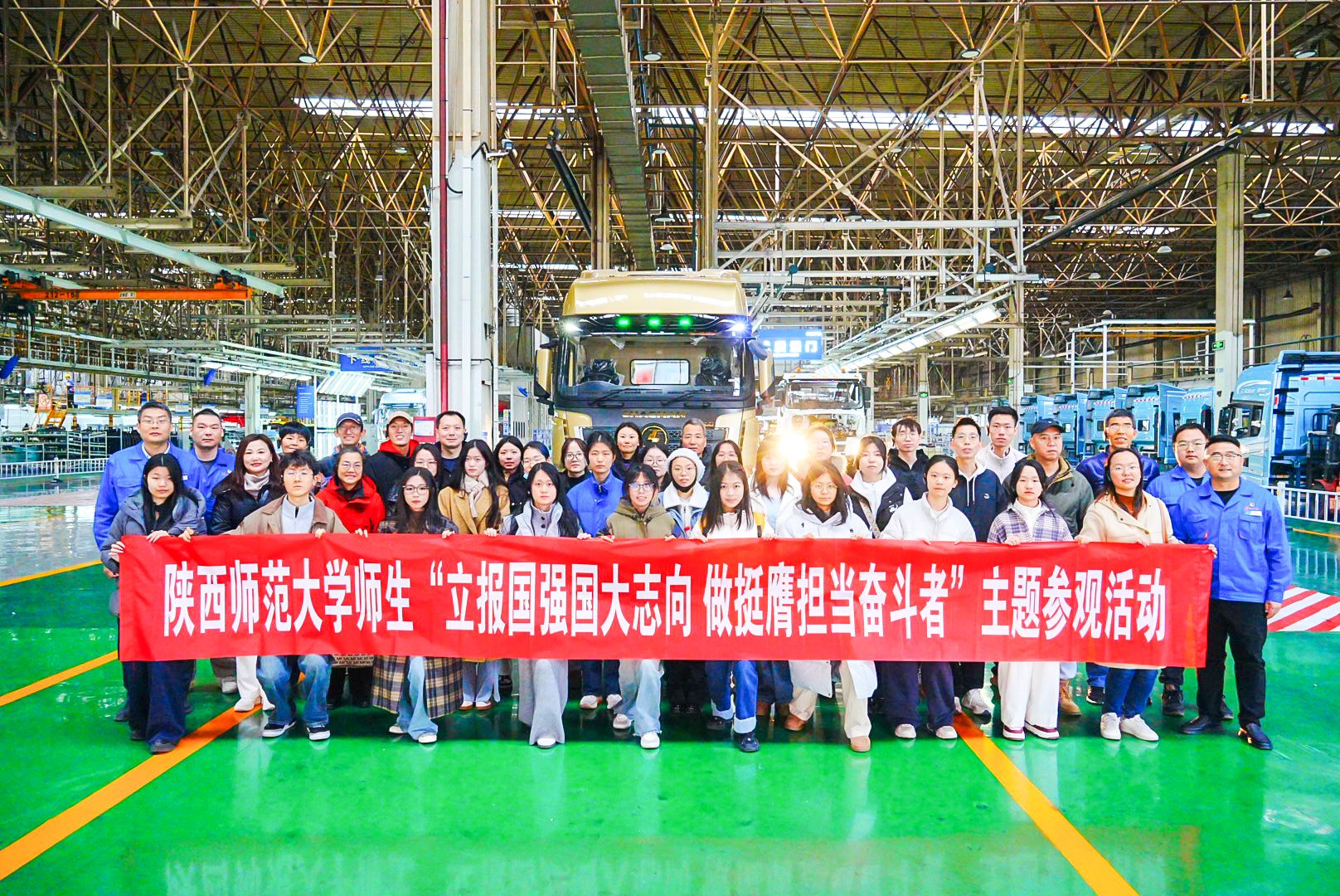 2025-12-05为大力弘扬劳模精神和工匠精神,引导师生树立正确的劳动观、价值观,近日,工会(妇委会)、体育学院教师体育教育训练党支部及青年学生代表50余人赴陕汽集团开展主题实践活动。此次活动以“立报国强国大志向,做挺膺担当奋斗者”为主题,深入企业生产一线,全面了解陕汽集团在创新驱动、智能制造、产业转型等领域的发展成就,与国之匠者面对面对话交流,近距离感悟陕汽集团坚守创优报国初心、深化“四新”引领实践的企业文化。 ...