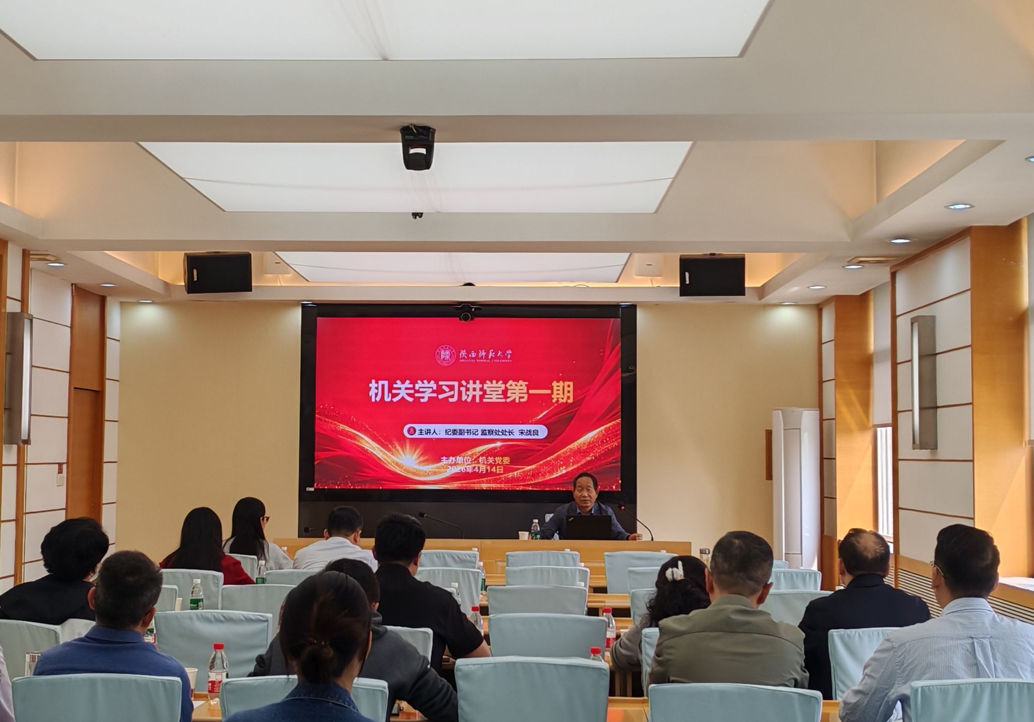 4月14日,由机关党委主办的首场“机关学习讲堂”正式开讲,学校纪委副书记、监察处处长宋战良应邀作专题报告。报告由机关党委副书记金卓明主持,机关各党支部纪检委员等30余人参加。